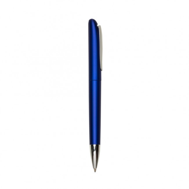 Descrição: Caneta plástica com carga esferográfica azul e acionamento por clique no clipe.