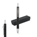 Esferográfica e lapiseira. Metal. 4 em 1. Esferográfica: 2km de escrita (total). Lapiseira: grafite 0.5. Em estojo almofadado. ø10 x 132 mm | Estojo: 150 x 43 x 24 mm
