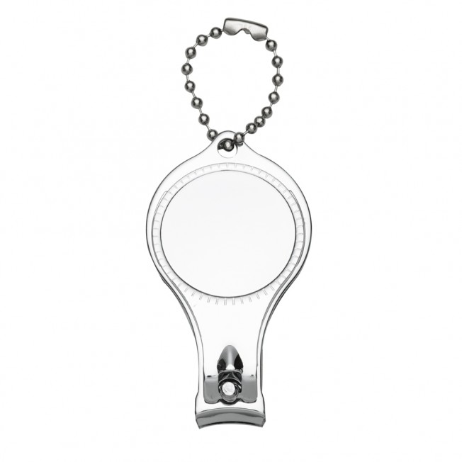 Descrição: Chaveiro metal 3 em 1: abridor, cortador e lixa. Parte central circular ideal para gravações, detalhe de traços no contorno circular. Lado frontal com detalhes em relevo nas laterais e pequeno círculo acima do abridor. Para utilizar o cortador basta rotacionar a peça cirular e levantá-la. Acompanha correntinha.
