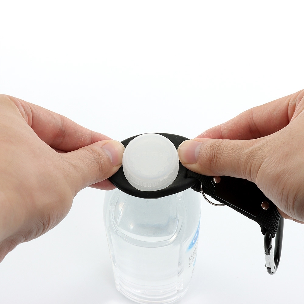 Descrição: Suporte para garrafa para pet. Acompanha mosquetão e argola para chaveiro.