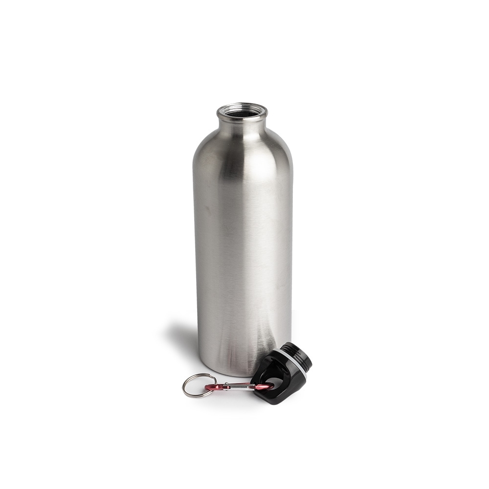 Descrição: Squeeze inox com capacidade para 550ml. Possui tampa rosqueável com alça e acompanhada de um mosquetão.